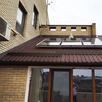 Жилой дом. Площадь 300 м.кв. Установлен солнечный коллектор TermoSolar. Работает с газовым и электрическим котлом, как основной источник отопления Миниатюра объекта: Фото объекта: